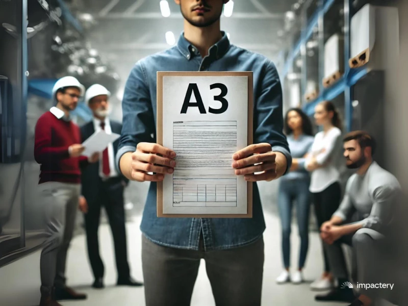 De A3-methode is een hulpmiddel binnen Lean Six Sigma dat wordt gebruikt om problemen op te lossen en processen te verbeteren. Het dankt zijn naam aan het A3-formaat waarop het rapport traditioneel wordt opgesteld. Dit formaat dwingt de gebruiker om de gedachtes en bevindingen beknopt en overzichtelijk weer te geven. In Lean Six Sigma helpt de A3-methode teams om gestructureerd problemen te identificeren, analyseren, en oplossen, terwijl het hen tegelijkertijd stimuleert om te focussen op de essentie van het probleem en de meest effectieve oplossingen.