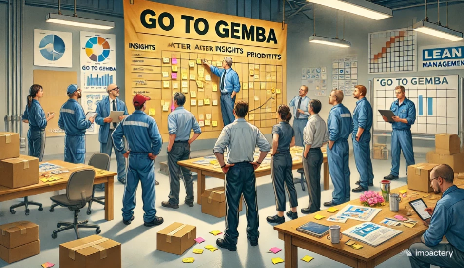 Door naar Gemba te gaan kom je oog in oog te staan met de werkprocessen en mensen die het werk uitvoeren. Je stapt daarbij uit de abstractie van vergaderzalen en rapportages. Dit helpt om problemen en kansen sneller te identificeren, en het bevordert een cultuur van samenwerking en respect. Door simpelweg aanwezig te zijn, toon je betrokkenheid en erkenning voor het werk dat daar wordt gedaan. Gemba is dus niet alleen een fysieke plek, maar ook een filosofie die leiderschap, samenwerking en continue verbetering stimuleert.