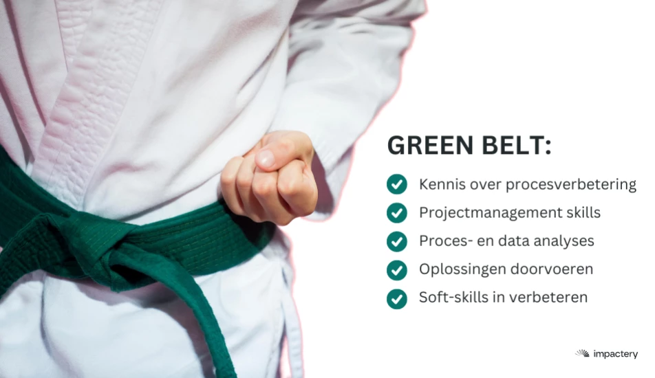Enkele belangrijke vaardigheden en kennis die je tijdens de Green Belt training opdoet, zijn: